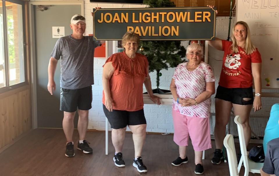 The clubhouse is now known as the Joan Lightowler Pavilion. The club presented Joan with the sign at the Xmas breakup party with the President and committee members. Joan has been on the committee performing several roles over the past 40 years. This includes treasurer, junior mid week and night convenor roles.